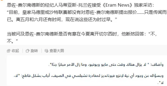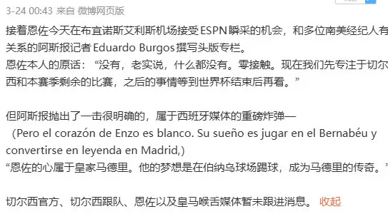 1. 强调没有和任何球队做过接触,目前专注于切尔西(这是所有回应的核心,恩佐确实没有说过自己想离开切尔西)。